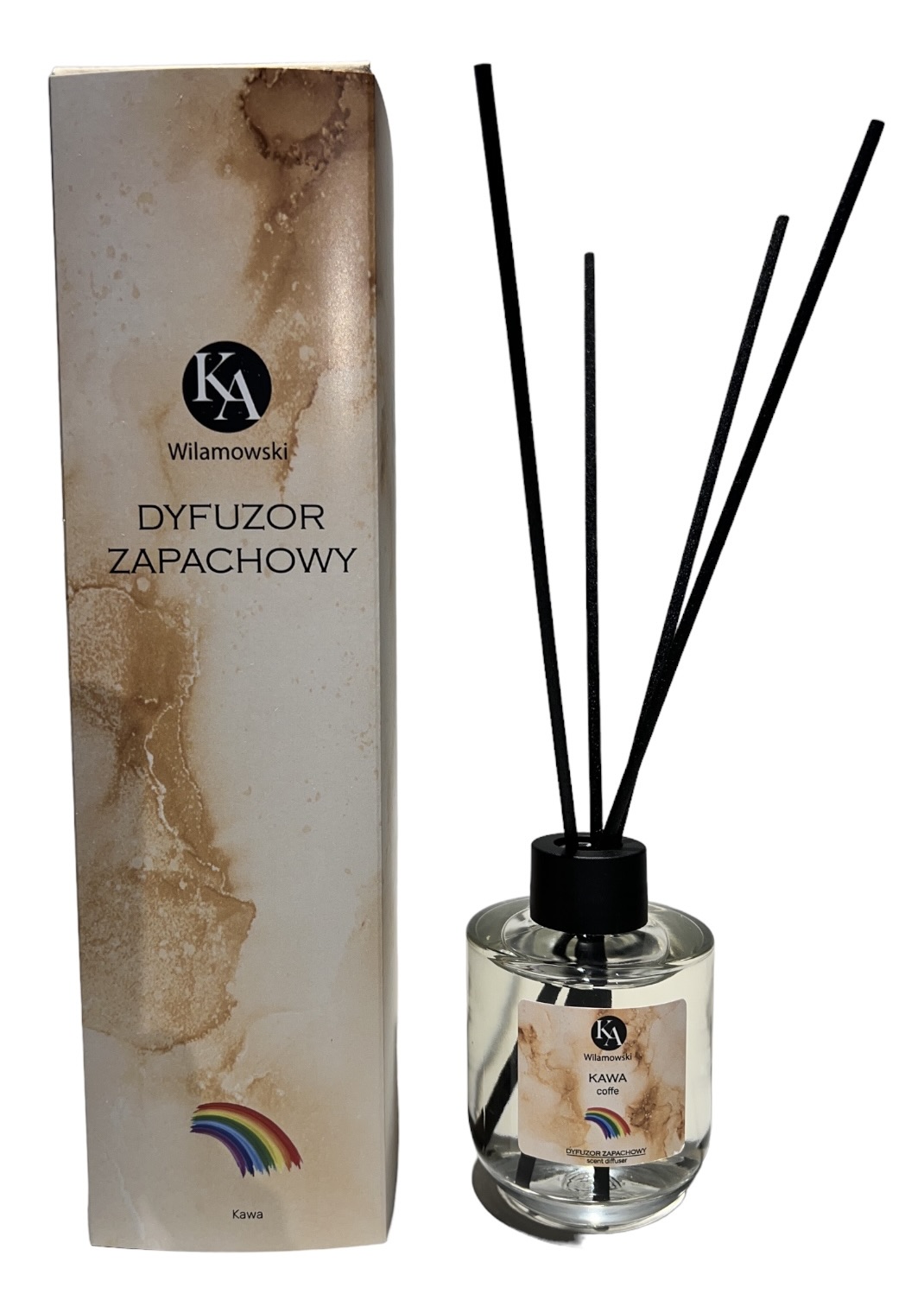 Dyfuzor zapachowy kawy z patyczkami z rattanu to elegancki sposób na wypełnienie pomieszczenia aromatem świeżo zaparzonej kawy.