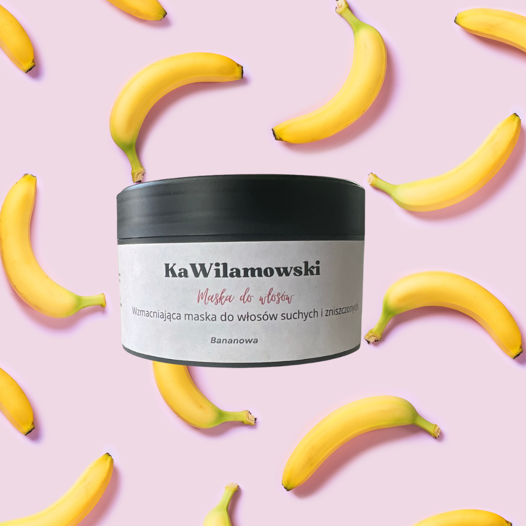 Z połączenia właściwości nawilżających oraz zapachu bananów powstała maska do włosów KaWilaamowski Banana. Produkt wzbogacony o kompleks multiwitamin odżywia, nawilża i wzmacnia pasma, ułatwiając ich rozczesywanie.