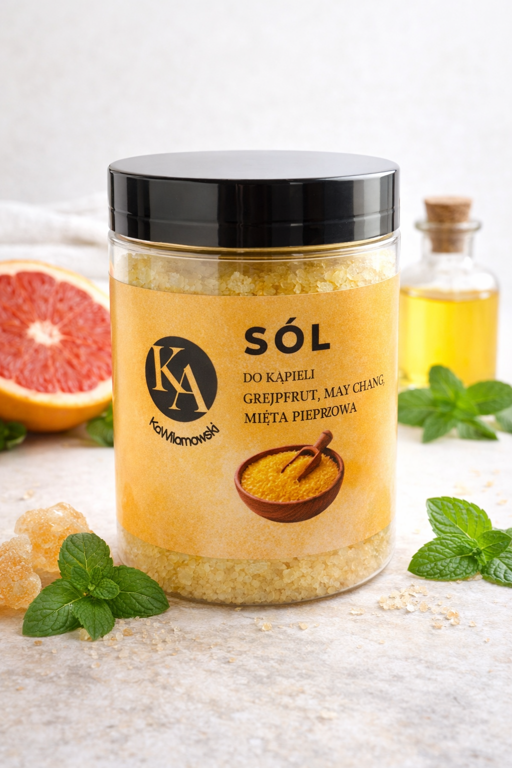 Orzeźwiająca sól do kąpieli o wyjątkowym, cytrusowo-miętowym aromacie, która pobudza zmysły, odświeża ciało i wspiera regenerację skóry. Połączenie soczystego grejpfruta, egzotycznego may chang oraz chłodzącej mięty pieprzowej tworzy energetyzującą kompozycję zapachową, idealną do relaksującej kąpieli.