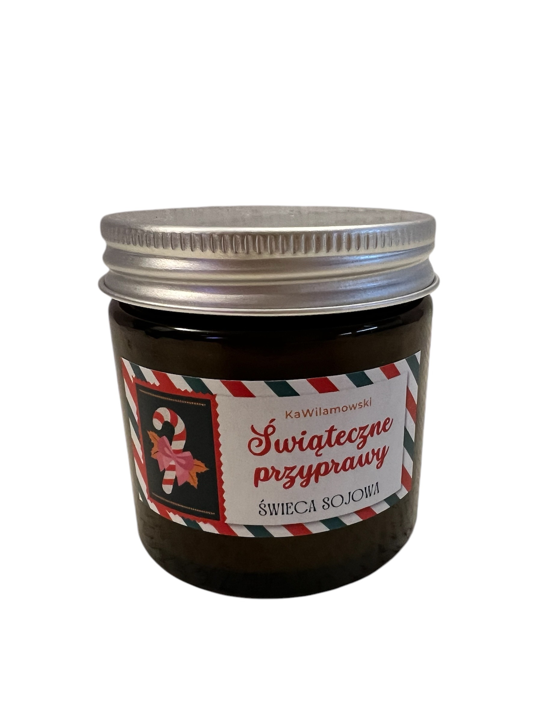 Wprowadź magię świąt do swojego domu dzięki naszej świecy sojowej KaWilamowski – Świąteczne przyprawy. Wyjątkowa mieszanka cynamonu, goździków, imbiru i odrobiny słodkiej pomarańczy tworzy zapach, który przywołuje wspomnienia zimowych wieczorów spędzonych przy kominku z kubkiem gorącego kakao.