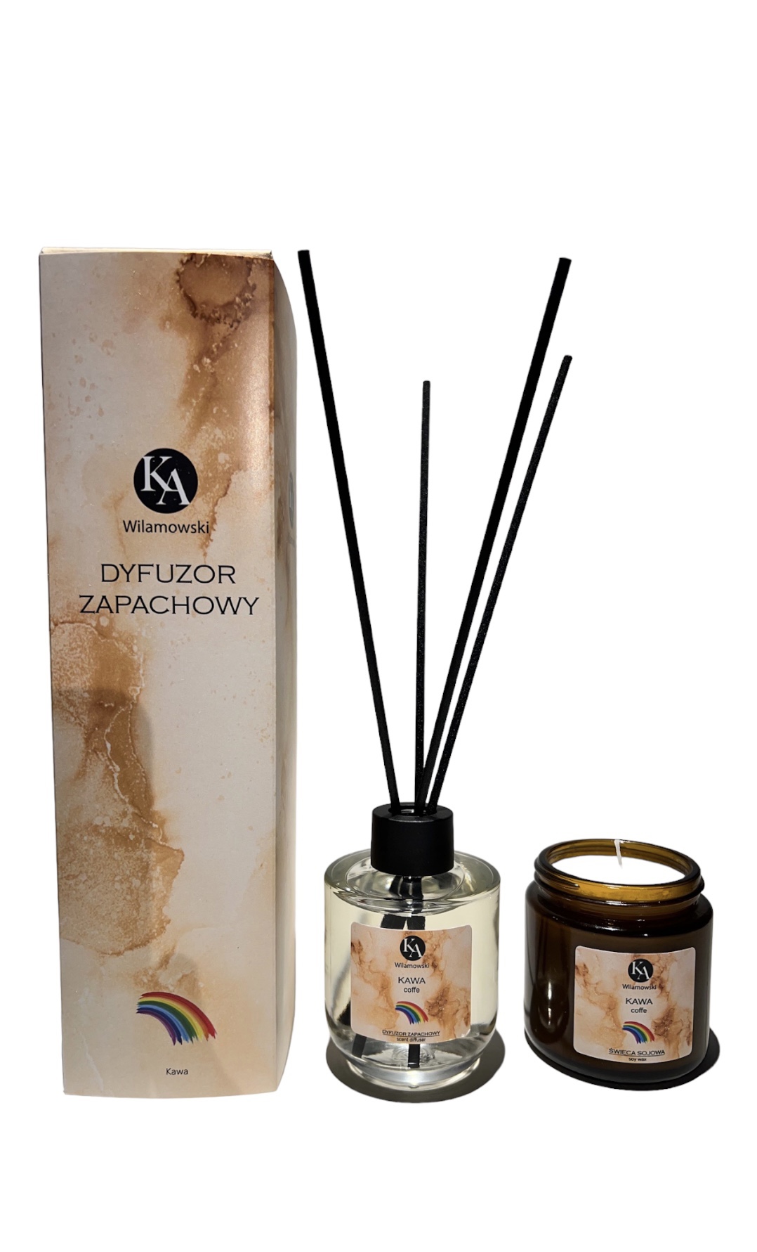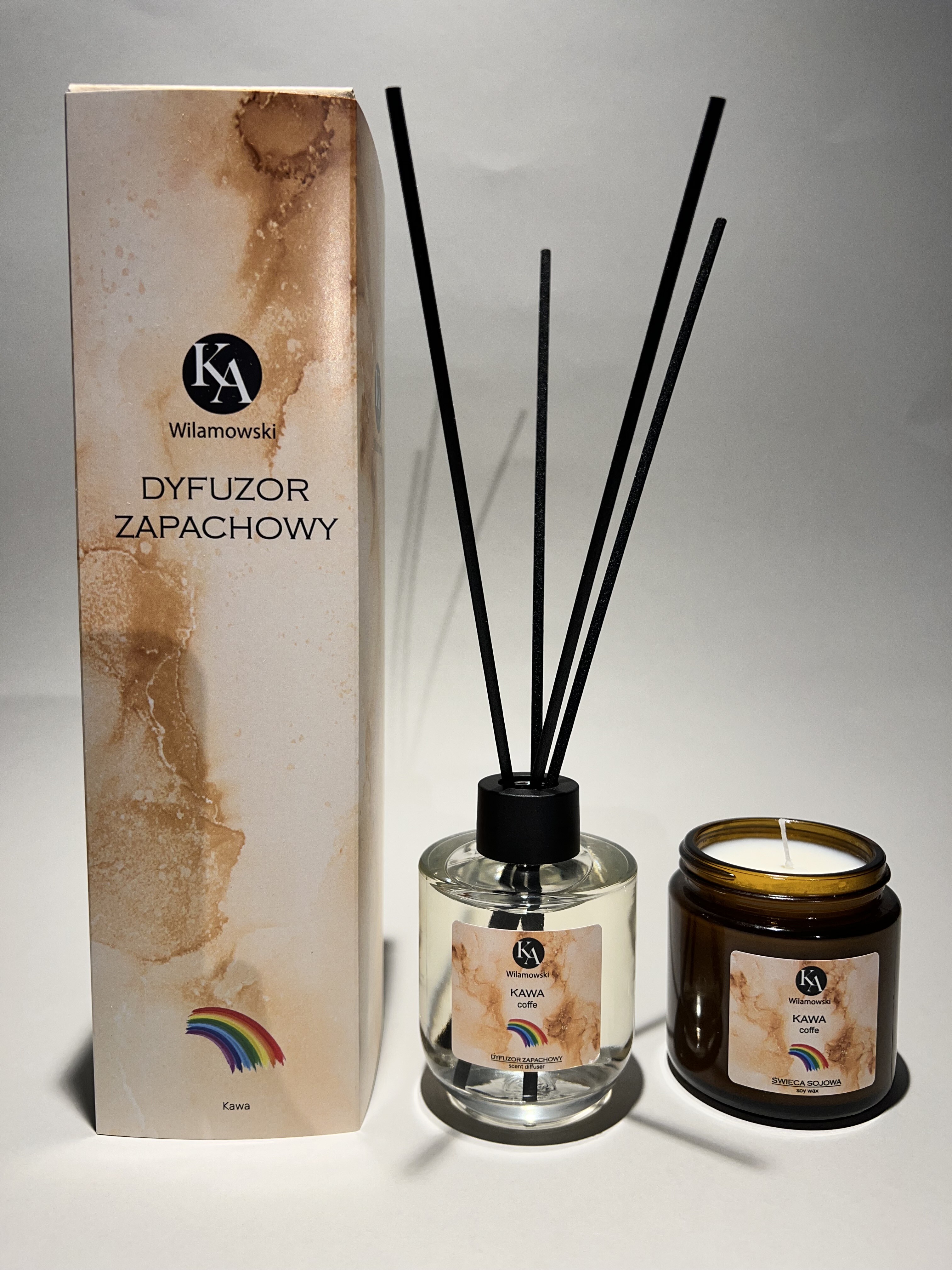 Odkryj nasz uroczy zestaw zapachowy, który obejmuje dyfuzor zapachowy i świecę o aromacie mango i marakui.